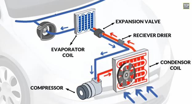 Compressor –The compressor must match the vehicle’s engine and refrigerant type. An incorrect compressor may cool poorly or fail early.